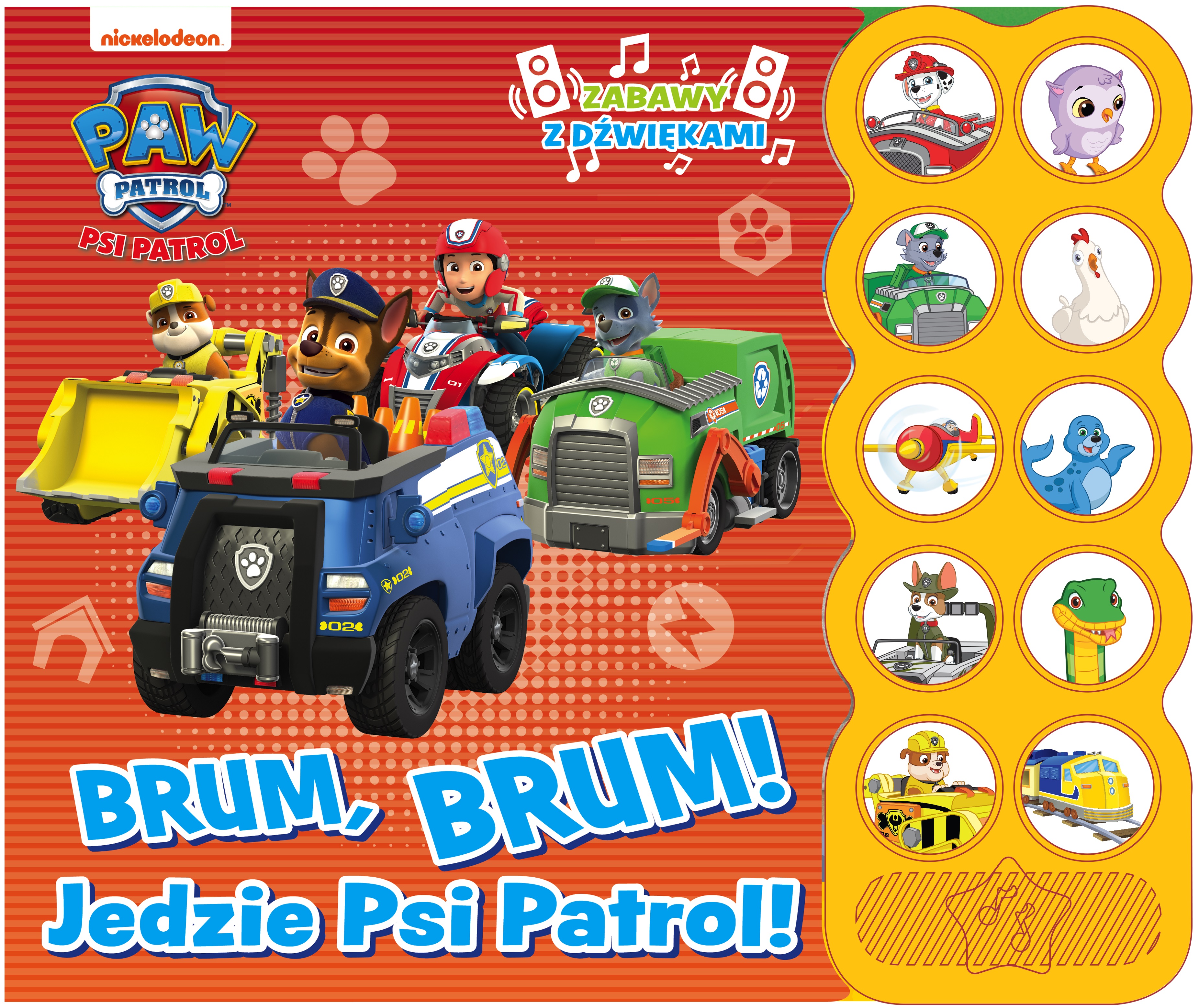 Brum, brum! Jedzie Psi Patrol! / Nickelodeon. - Warszawa : Media Service Zawada, [2021]. - [12] stron : ilustracje ; 25 x 30 cm.